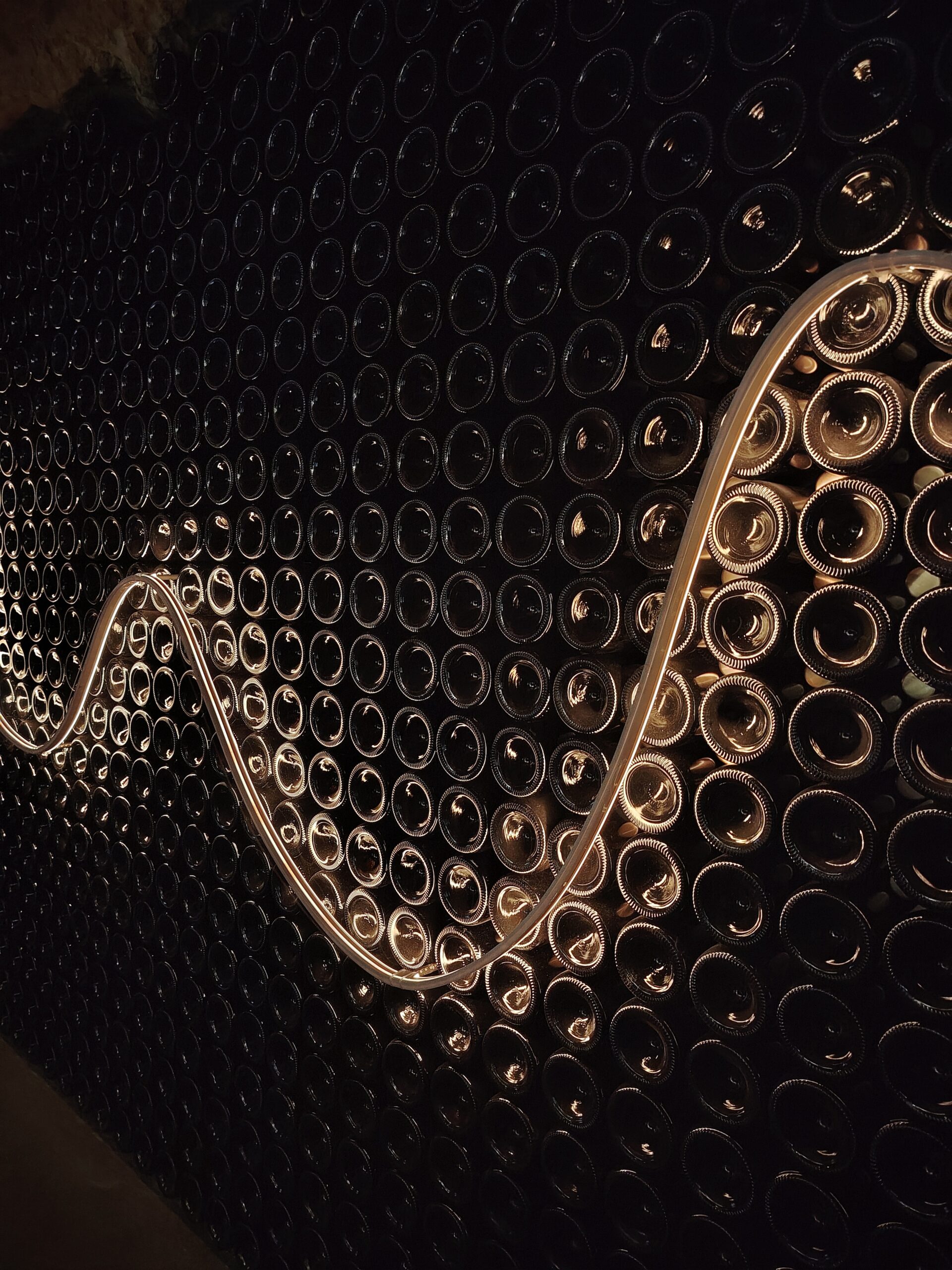 Les bouteilles reposent alors sur lattes (de 12 à 36 mois), dans la fraîcheur de nos caves. C’est là, loin du bruit du monde, que le vin s’affine, lentement.